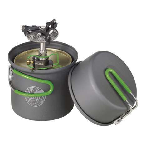 Optimus Crux stufa a gas Lite dotata di un potente e leggero bruciatore di 3000W. Esso comprende bruciatori con il sacchetto della valvola e l'immagazzinaggio.